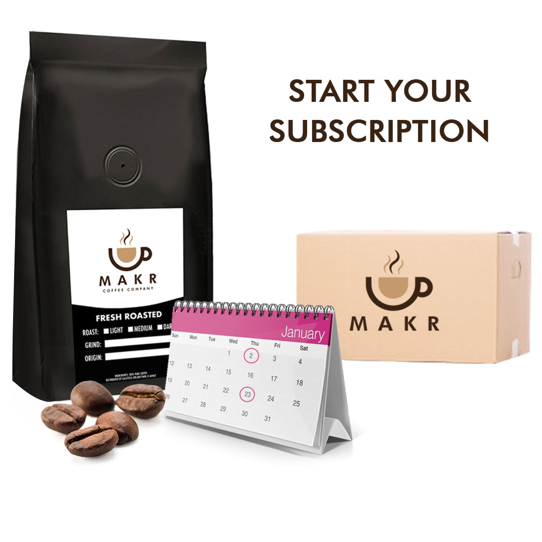 Never Run Out! Setting up subscription with us is a convenient way to ensure you never run out of your favorite MAKR beans. Simply select your Frequency, Grind and Preferred Beans and we will ship fresh roasted coffee to your door. Save up to 10% on your order when you make it a subscription.